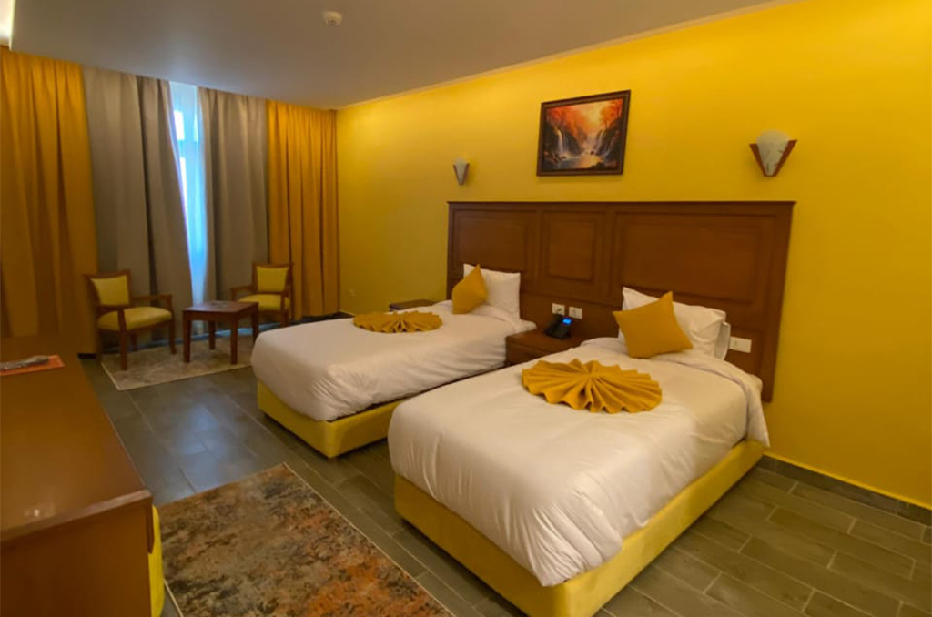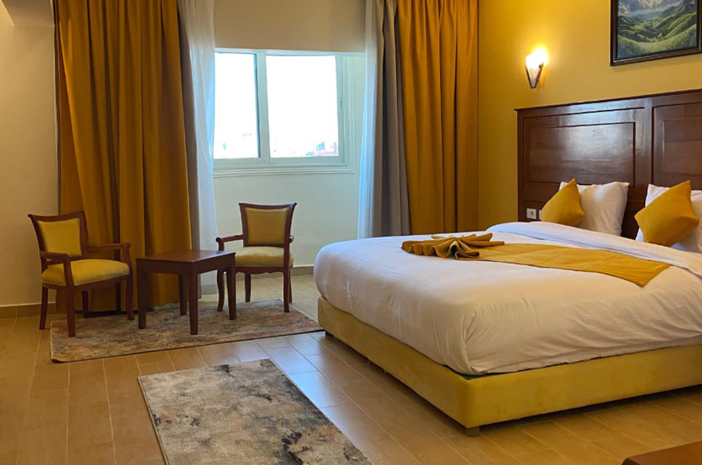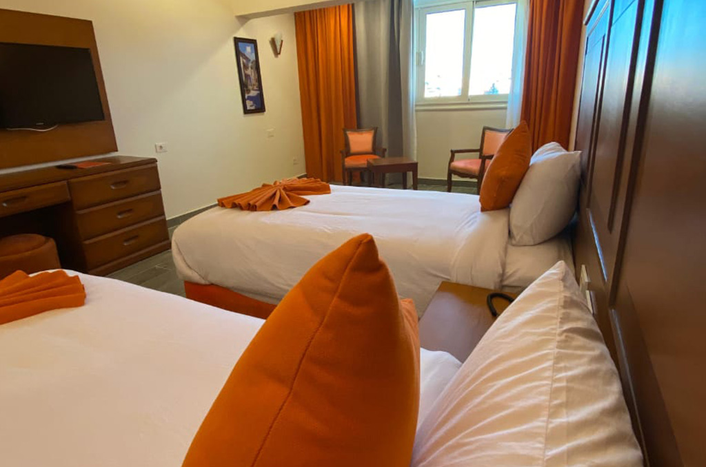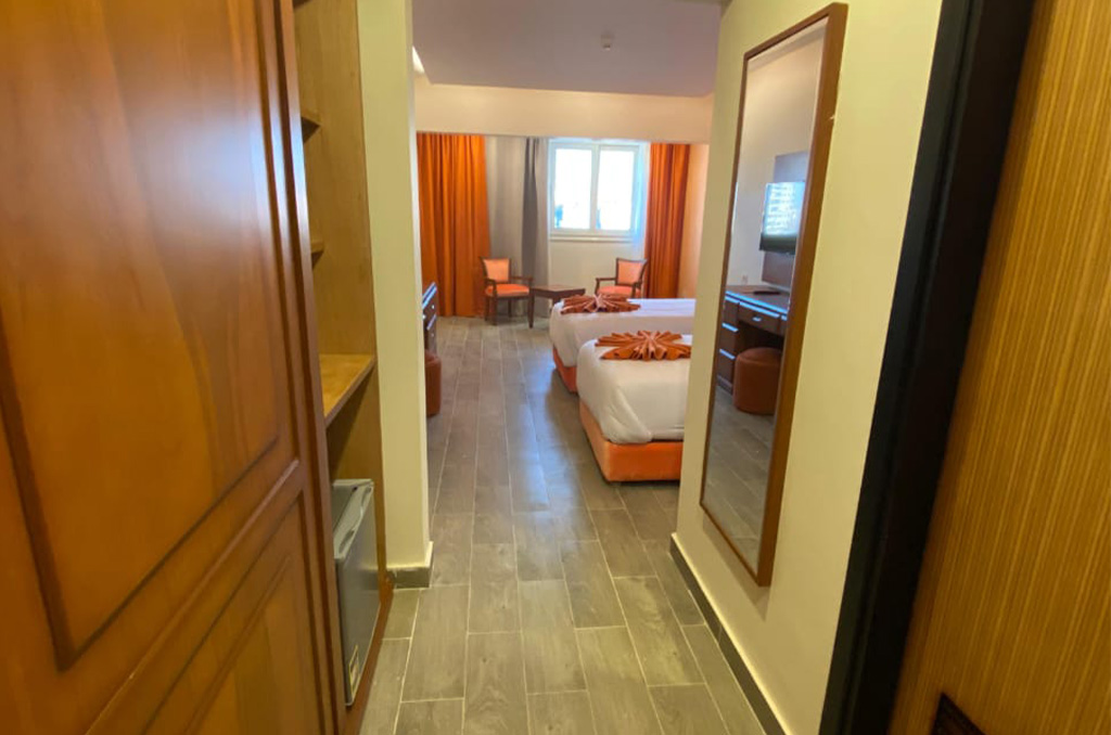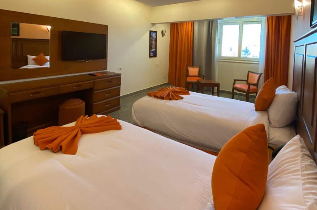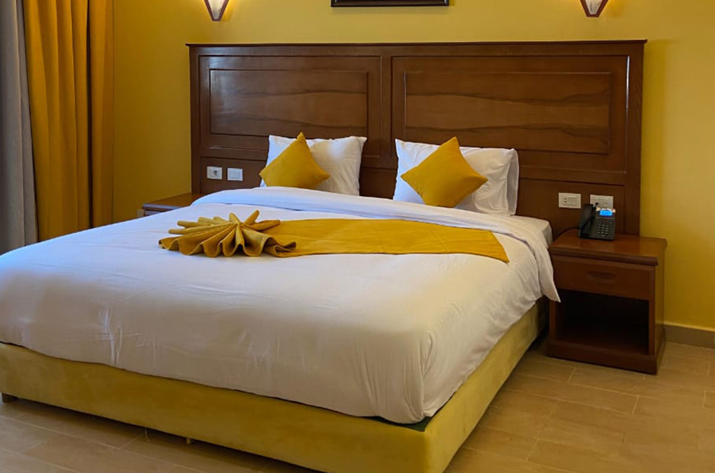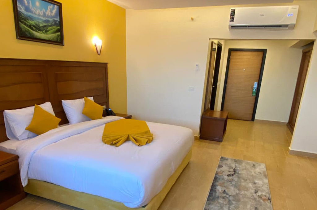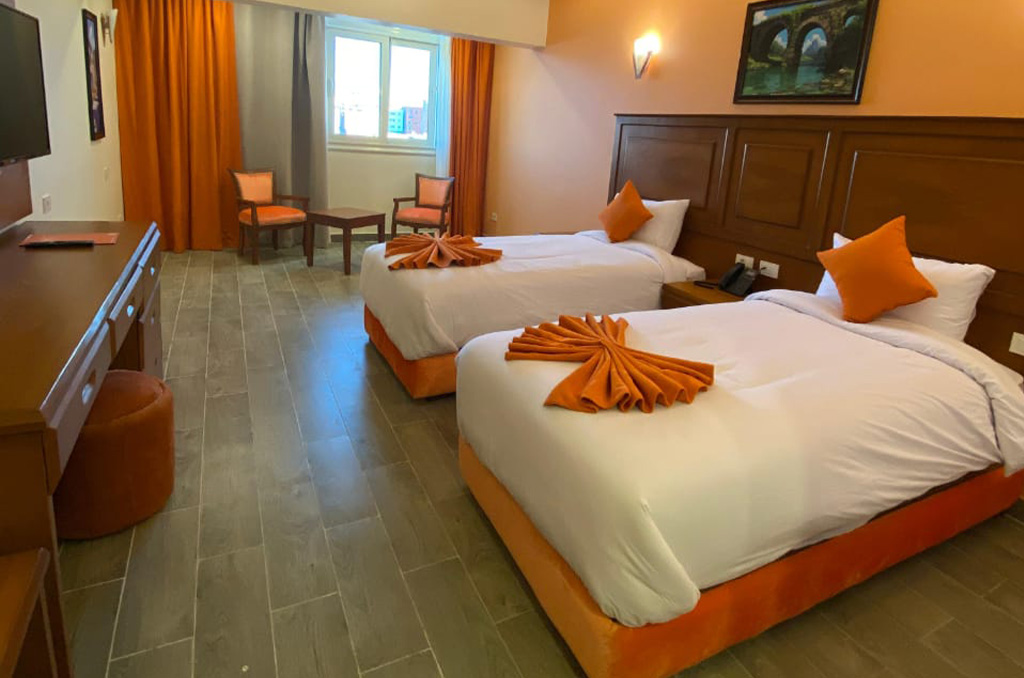 The Double Room at Aracan Ras El Bar Hotel is available exclusively for Egyptians and foreign residents. It offers a